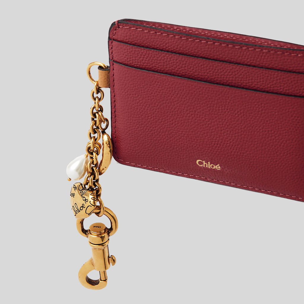 CHLOE Charms Card Holder In Grained Leather Brunet Red CH25AP977Q12622