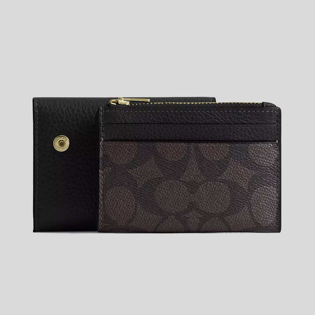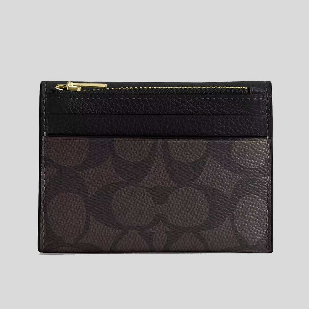 COACH Card Holder Wallet In Signature Canvas Walnut/Black CZ034