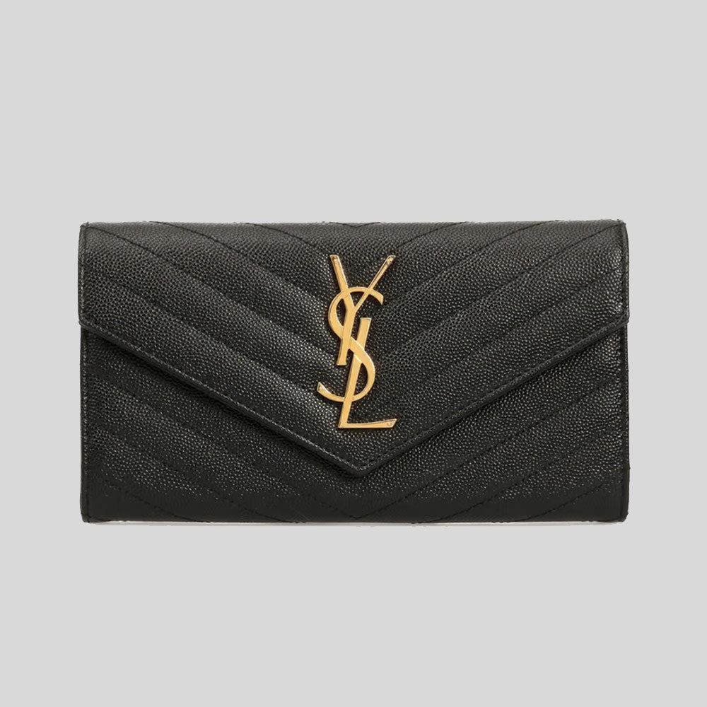 SAINT LAURENT YSL Cassandre Matelasse Large Flap Wallet In Grain De Poudre Embossed Leather Black 372264BOW01