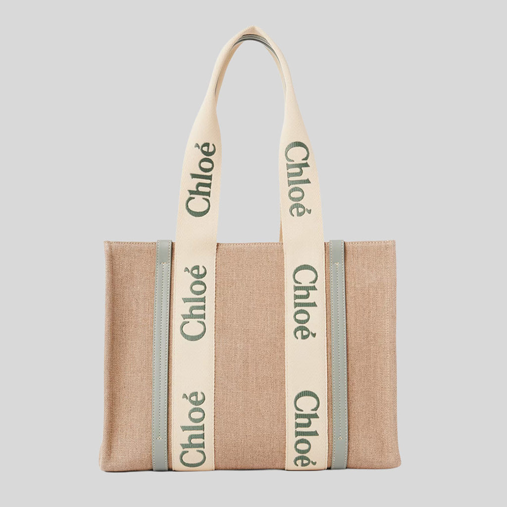 CHLOE Woody Medium Tote Bag Bluish Green CHC23AS383L1738T