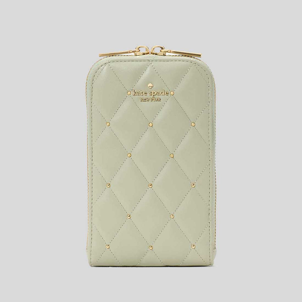 KATE SPADE Carey Quilted Studded Phone Chain Crossbody Sage Bundle KL818