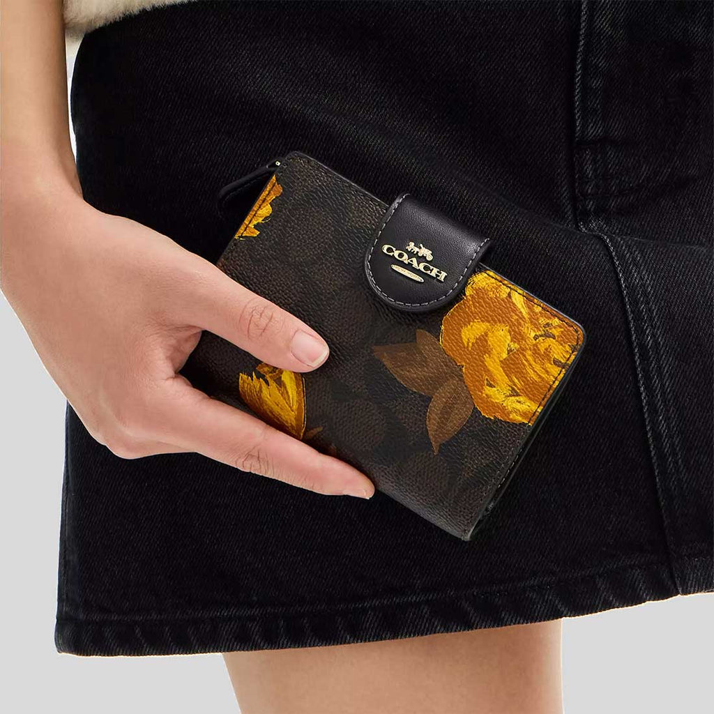 COACH Medium Corner Zip Wallet In Signature Canvas With Floral Print Walnut/Black CCL69 PRINT VARIES