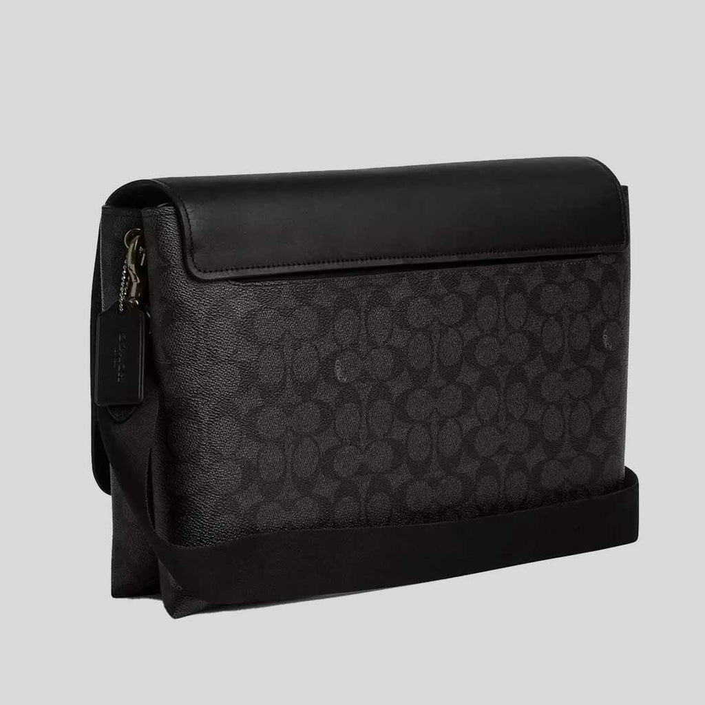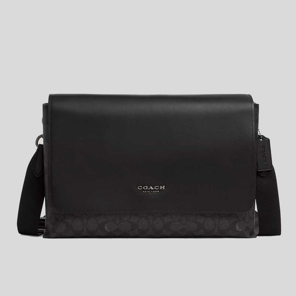 COACH Caleb Messenger Bag In Signature Canvas Charcoal/Black CY837