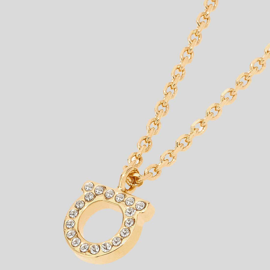 FERRAGAMO Crystals Necklace Gold Color 696654