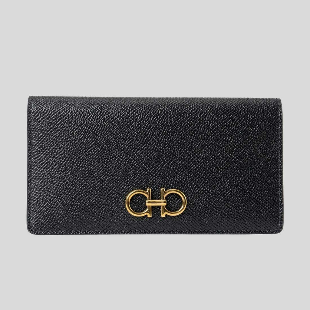 FERRAGAMO Gancini Continental Wallet Black 726510