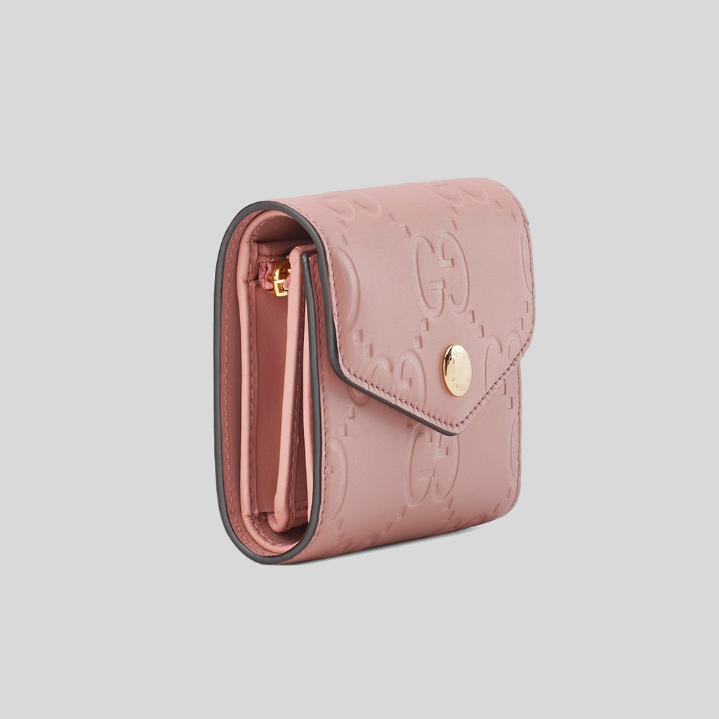 GUCCI Gilbert Calf Leather GG Trifold Wallet Dusty Rose 772793