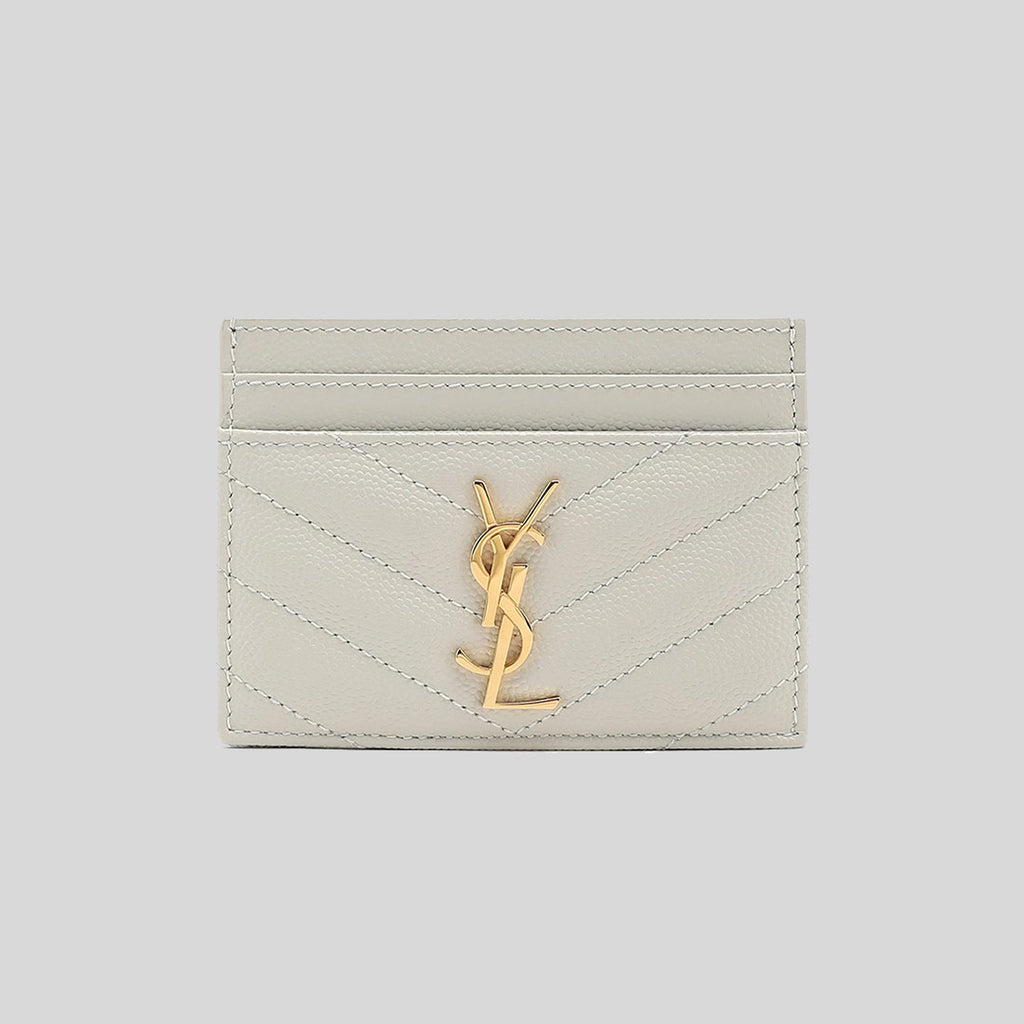 SAINT LAURENT YSL Cassandre Matelasse Card Case In Grain De Poudre Embossed Leather Crema Soft 423291